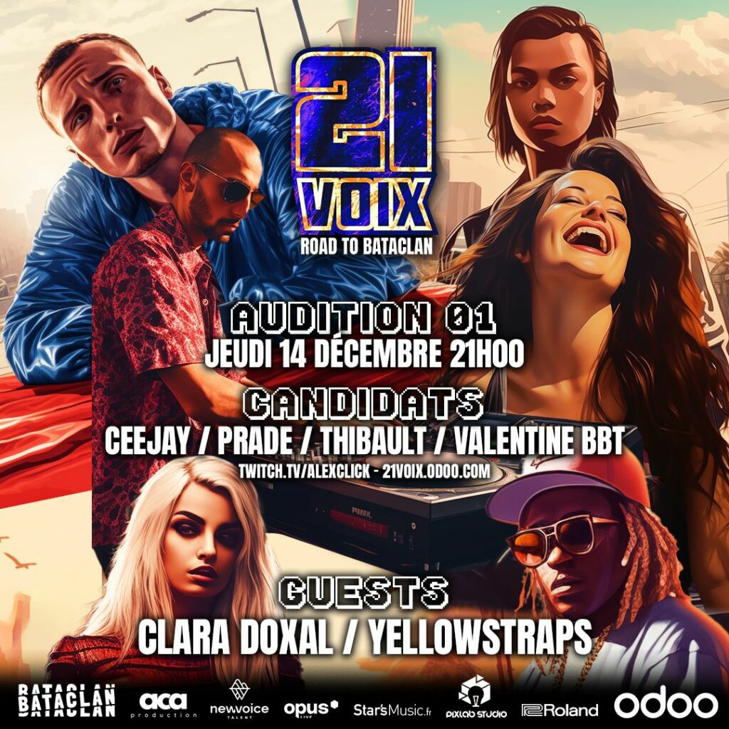 La première audition s’est tenue le 14 décembre en direct sur Twitch, avec Geejay, Prade, Thibault et Valentin BBT.